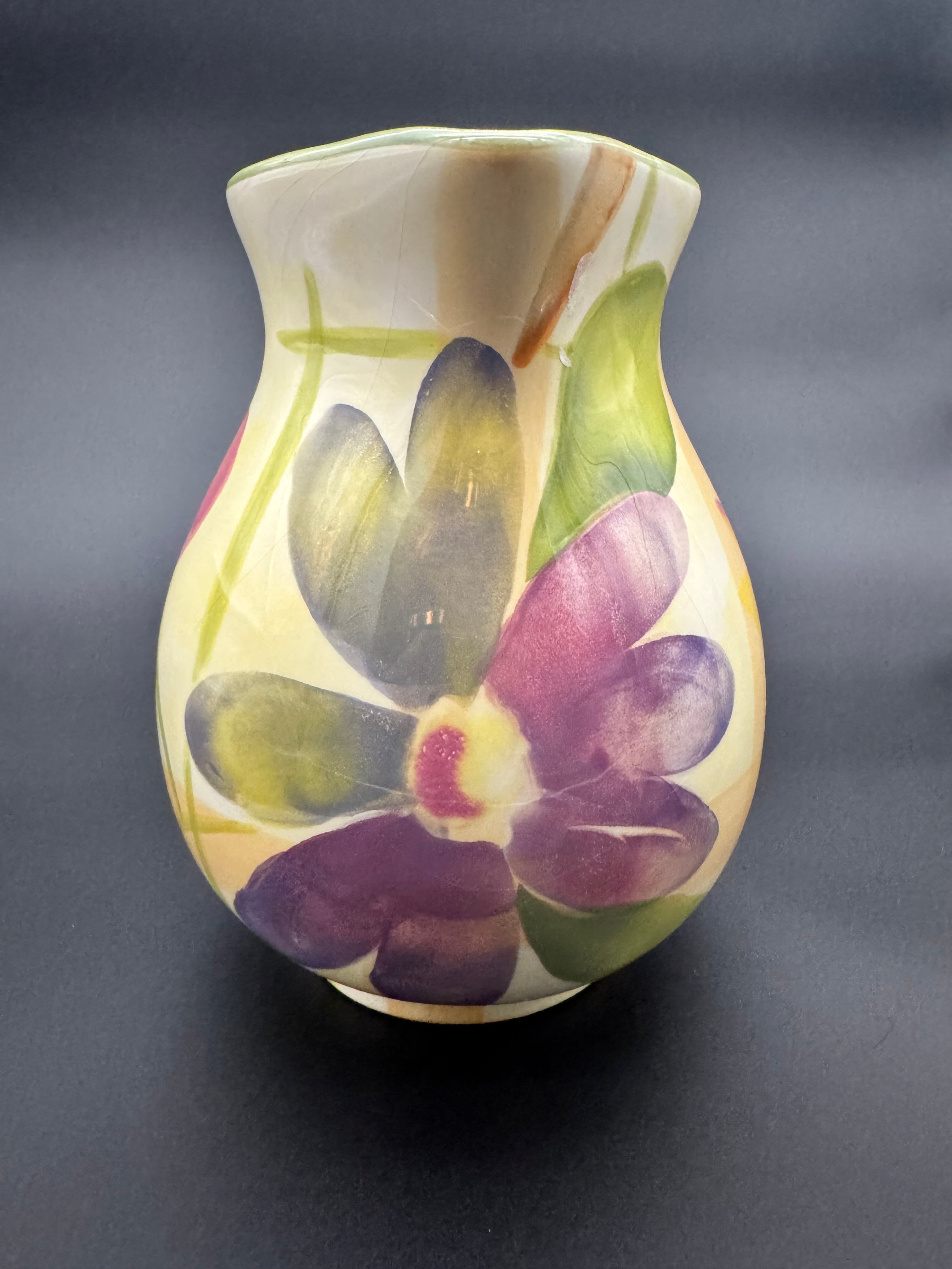 Golden Garden – Warm-toned ceramic with painterly florals in golden yellow, soft green, and blush