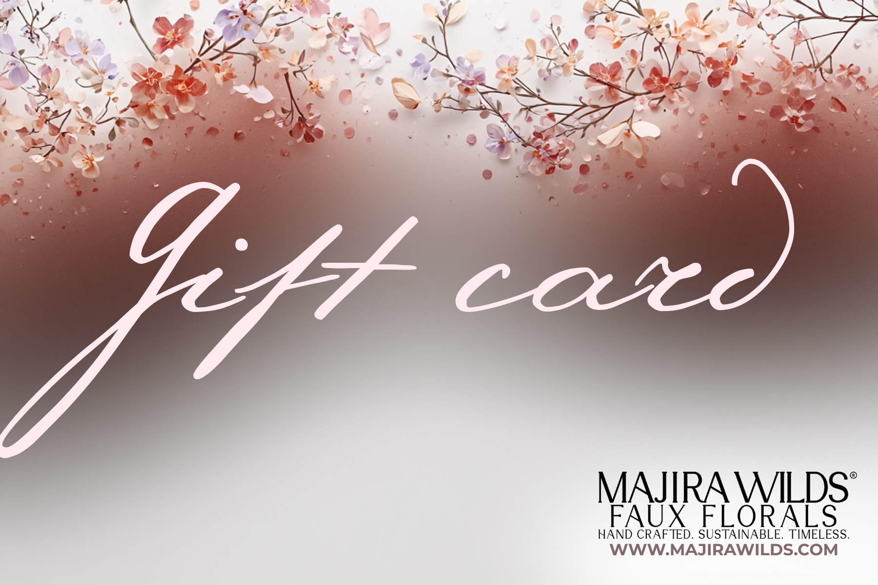 The Majira Wilds® Gift Card invites your recipient to explore timeless faux florals, botanical art, and nature-inspired pieces crafted with intention and care. From forever arrangements to meaningful gifts, each creation is rooted in sustainability, artistry, and quiet elegance.