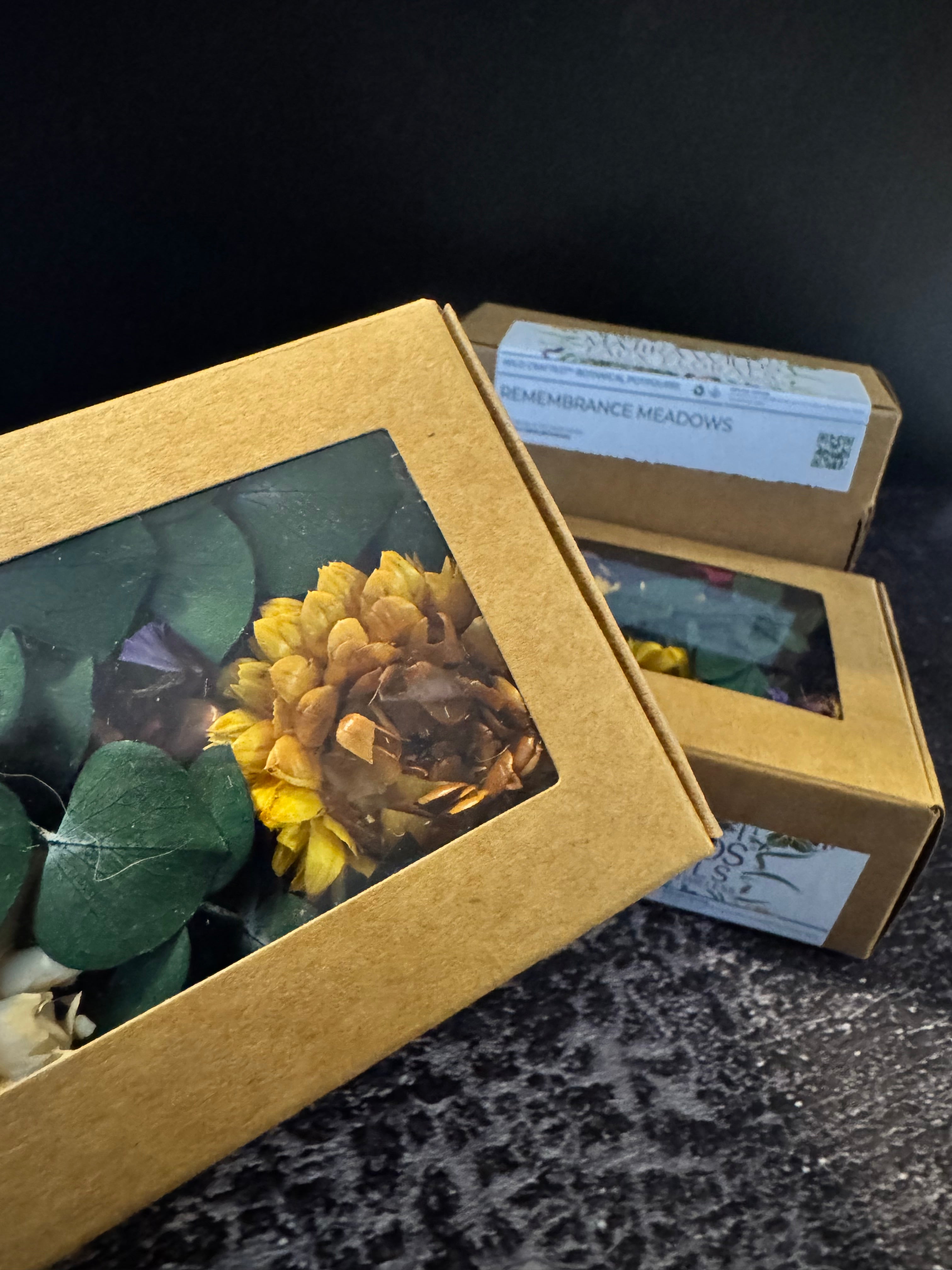 Each small-batch composition is assembled using dried florals, herbs, and natural textures chosen for both visual beauty and aromatic presence. Designed to be displayed openly, these botanicals offer a subtle, evolving scent that softens over time — just as nature intended. No two batches are ever exactly the same. Each one reflects season, tone, and intention.